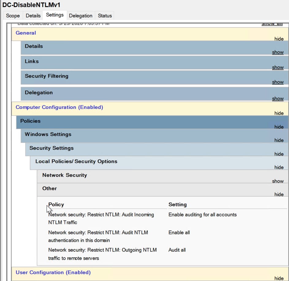 There is a second problem that predates this research. Old GPOs that previously set LmCompatibilityLevel leave the value tattooed in the registry even after you change or remove the policy. If you inherited an environment there could be machines sitting at level 2 or 3 right now because a GPO from five years ago wrote the value and nobody cleaned it up. You would not know unless you actually checked.